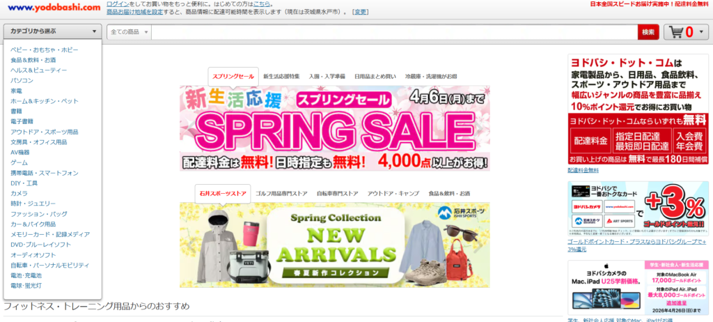 ヨドバシ.comは家電量販店の通販サイトですが、日用品も豊富に取り扱っており、送料無料が魅力です。